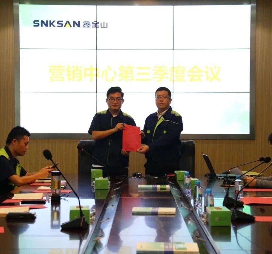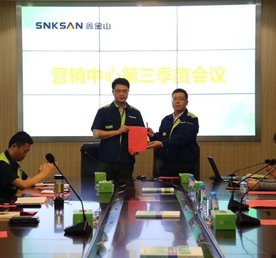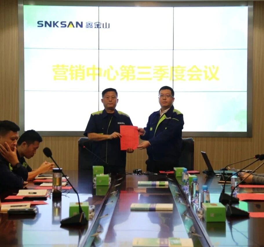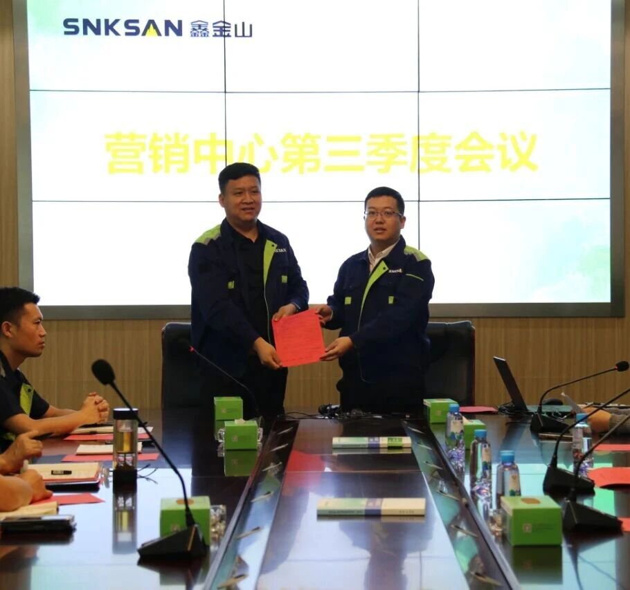 本次会议既是对第三季度营销工作的系统复盘,更是对四季度冲刺的全面动员。从复盘总结到表彰先进,从签约立状到分层部署,每一个环节都紧扣 “冲刺全年” 的核心目标,凝聚着鑫金山营销团队的决心与信心。