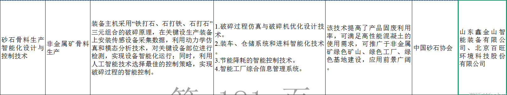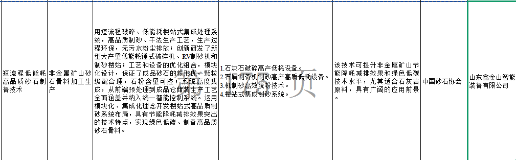 导读:近日,自然资源部公示《矿产资源节约和综合利用先进适用技术目录(2025 版)》,山东鑫金山智能装备有限公司的《短流程低能耗高品质砂石制备技术》《砂石骨料生产智能化设计与
