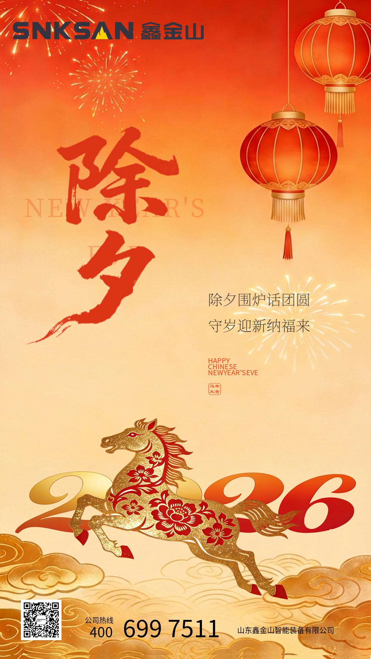 炉火正旺,马蹄声疾。值此除夕团圆之际,鑫金山向您致以最诚挚的新春问候!感谢过去一年里的信任与支持,2026 年,愿我们继续携手,以实干破局,以匠心筑梦。祝您在马年里:宏图大展,基业长青,阖家安康,福暖四季!